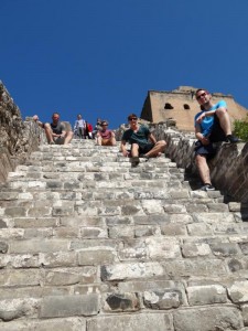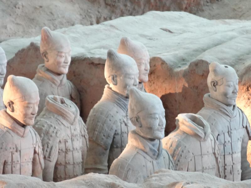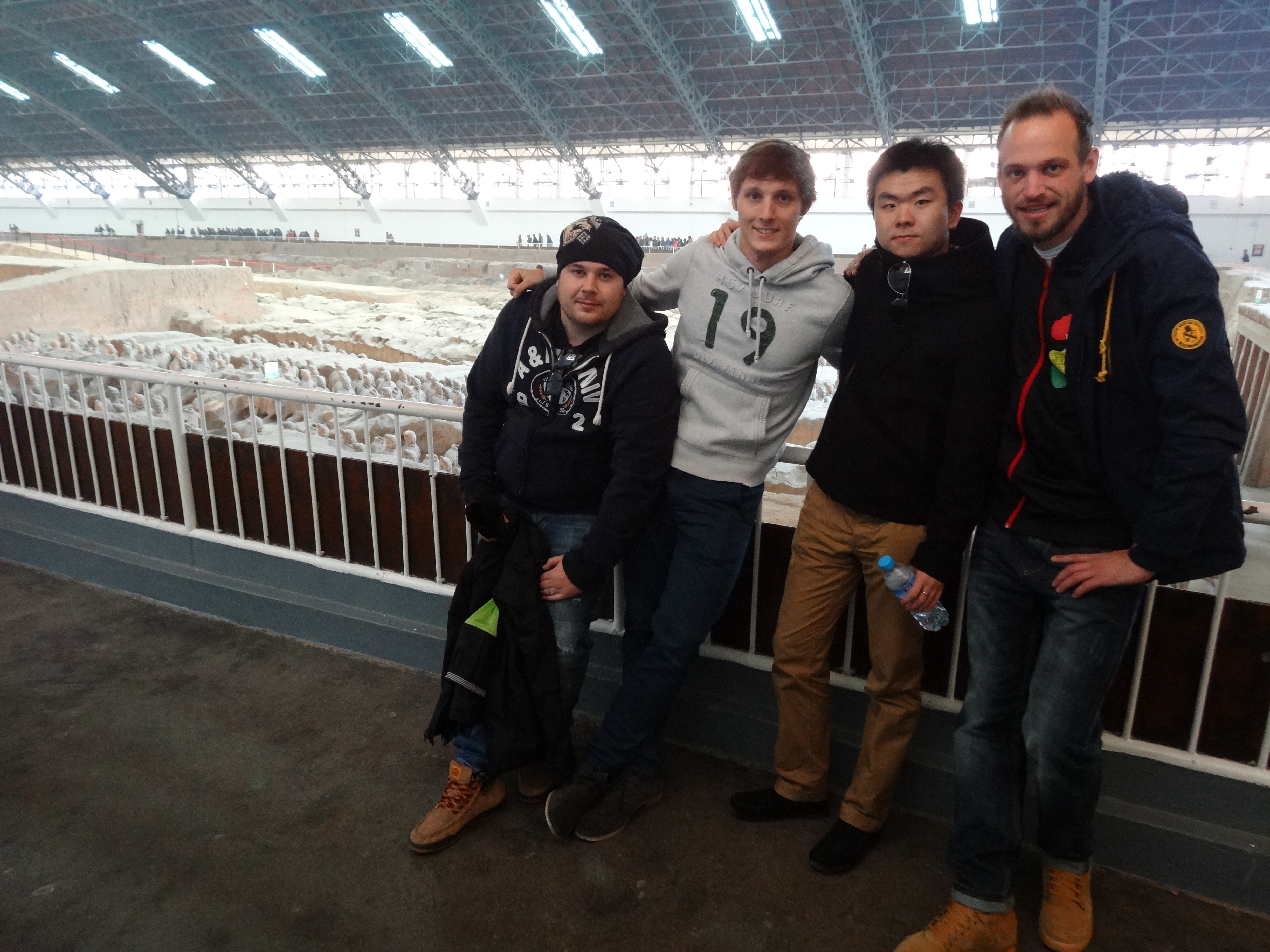 Das Hostel war ziemlich groß, hatte aber trotzdem ein sehr familiäres Flair. Es verfügte über eine Coffee Bar mit sehr leckerem Essen. Eine Bar im Keller, in der wir dann auch gleich den ersten Abend verbracht haben. Die Auszeichnung für die beste Bar in der Stadt kann ich bestätigen. Am nächsten Tag haben wir dann die Stadt erkundet, waren etwas shoppen und haben uns später auf die Stadtmauer begeben. Von dort aus konnten wir uns eine traditionelle Trommelshow und eine Akrobatikshow anschauen. Zum Sonnenuntergang ging es dann mit dem Tandem über die Stadtmauer. Sehr romantisch möchte ich an der Stelle festhalten 😉 Eine komplette Rundfahrt haben wir allerdings nicht geschafft. Wieder im Hostel angekommen, erreichte dann auch der Rest der Truppe die Stadt. Mein chinesischer Freund Lee hatte sich auch noch kurzfristig entschieden mitzukommen, musste aber noch am Freitag arbeiten und kam so erst am Samstagmorgen an. So trafen wir uns am nächsten Tag mit Lee, der uns dann den Weg zur Terrakotta-Armee wies. Die Fahrt mit dem Bus dauerte circa 2 Stunden.